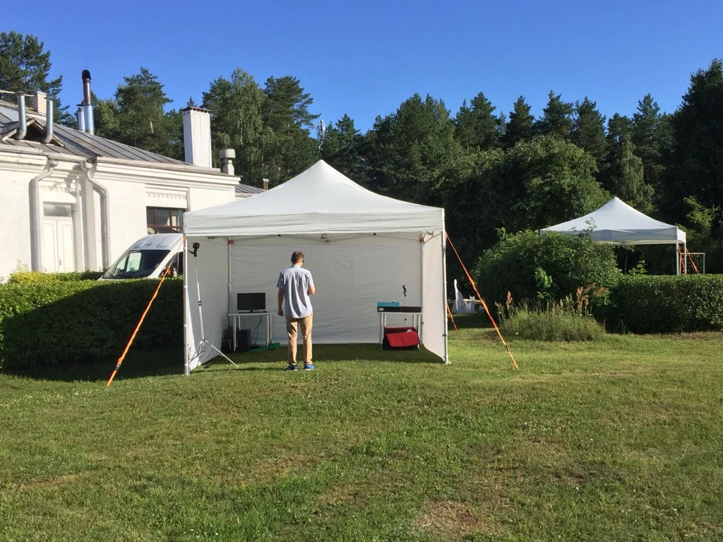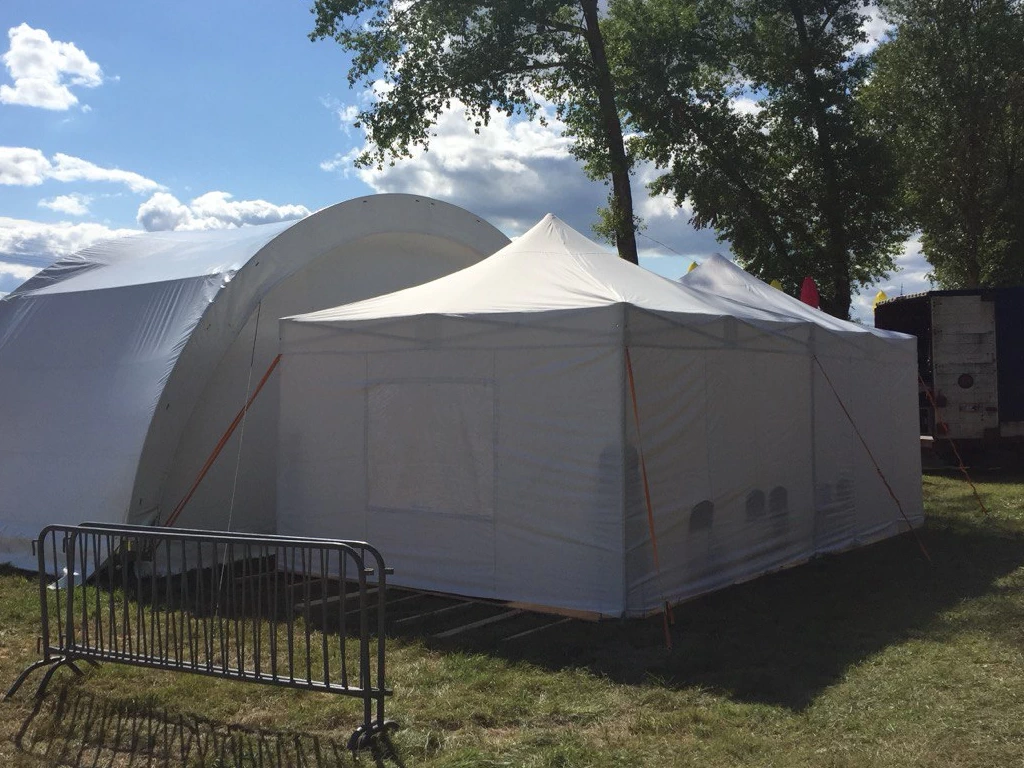 • для организации изолированного помещения, например гримёрки для приглашённых артистов, при установке трёх глухих стен и одной с молнией для входа