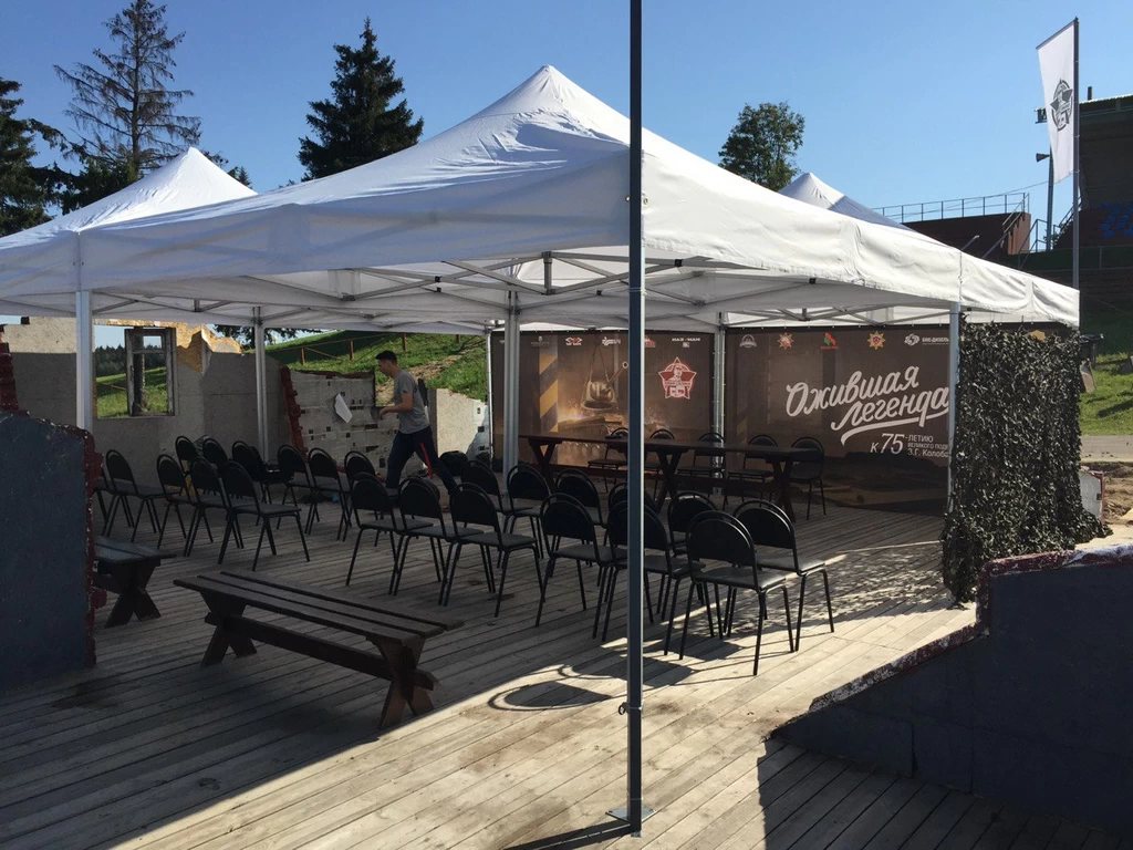 Оформляя прокат шатра 4х4 метра, клиент получает возможность организовать пространство в соответствии с собственными требованиями. Конструкция допускает его использование: