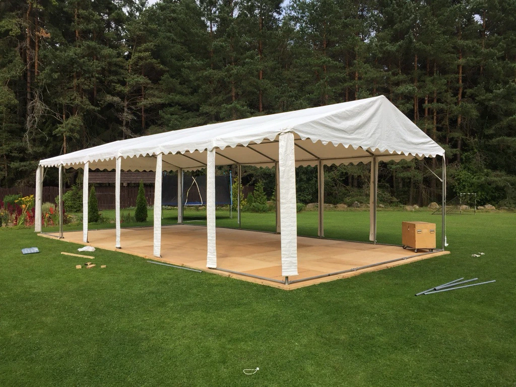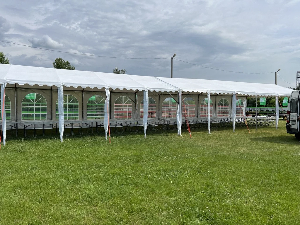 При планировании любого крупного мероприятия на открытом воздухе сложно обойтись без вместительных палаток или павильонов, в которых сможет комфортно разместиться большое количество гостей. Аренда шатра 6х12м позволит оперативно возвести защищенное от неприятных сюрпризов погоды просторное помещение с надежной двускатной крышей и боковыми стенками из современного непромокающего материала.