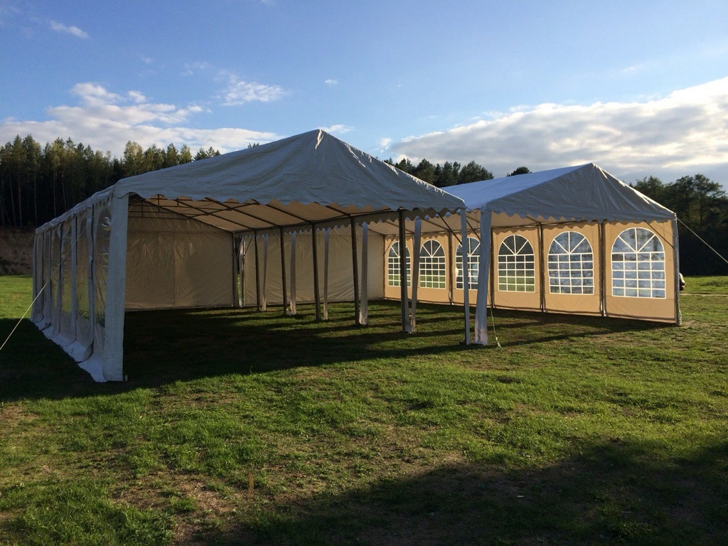 Это достойный вариант, который одинаково эффективно может быть использован для организации мероприятия любого масштаба: фуршета или свадьбы, корпоратива или выставки. Банкетный шатер предусматривает соединение модулей 6х12м в общую тентовую конструкцию, что позволяет обеспечить вместимость от 80 до 800 человек. Универсальность конструкции повышается возможностью оперативно навешивать и снимать боковые стенки с большими прозрачными окнами.